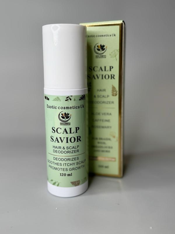 Exotic Cosmetics -Scalp Savior - HaircareHair and Scalp Deodorizer Spray for Braids Wigs Dreadlocks with Aloe Vera Caffeine Rosemary Hydrosol for Hair Growth Scalp Refreshing Anti Itching Odour Eliminating 120ml
